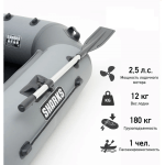 В данной лодке предусмотрена возможность установки лодочного мотора мощностью до 2,5 л.с. или электромотора на навесной транец (приобретается отдельно).