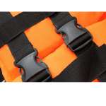 Фиксация жилета и регулировка объема осуществляется с помощью ремней на фастексах. Снизу расположен паховый ремень с регулировкой и фиксацией длины. Жилет с высоким подголовником, который хорошо держит голову человека на плаву и обладает достаточной гибкостью для складывания при транспортировке. Сверху на уровне груди и сзади на подголовнике размещены светоотражающие ленты. Справа на груди расположен карман на молнии, в котором размещается свисток на шнурке.